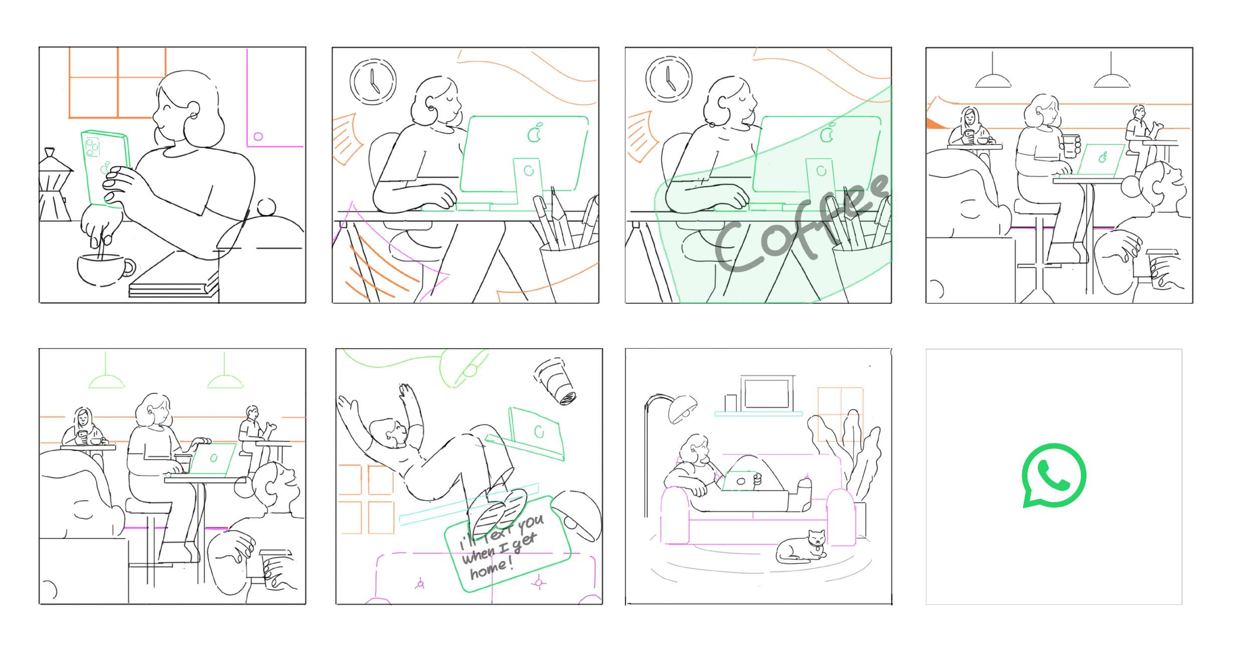 Together with WhatsApp internal teams we developed a pack of 40 videos for their in-app messaging